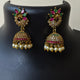 Make an elegant statement with Heritage Pearl Dome Jhumkas—classic bell-shaped beauties adorned with intricate gold filigree, vibrant ruby-green gemstones, and delicate pearl drops. With their antique finish and grand silhouette, these jhumkas are a timeless match for sarees, lehengas, and festive ensembles, bringing regal charm to every celebration.