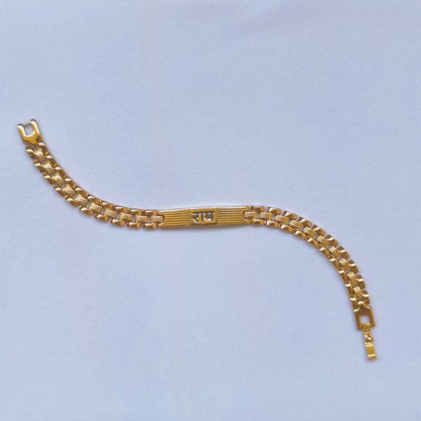 Crafted with premium anti-tarnish gold plating, this men’s bracelet ensures long-lasting shine and durability. Its bold chain design with textured detailing adds a touch of luxury, making it perfect for festive wear, daily styling, or gifting.