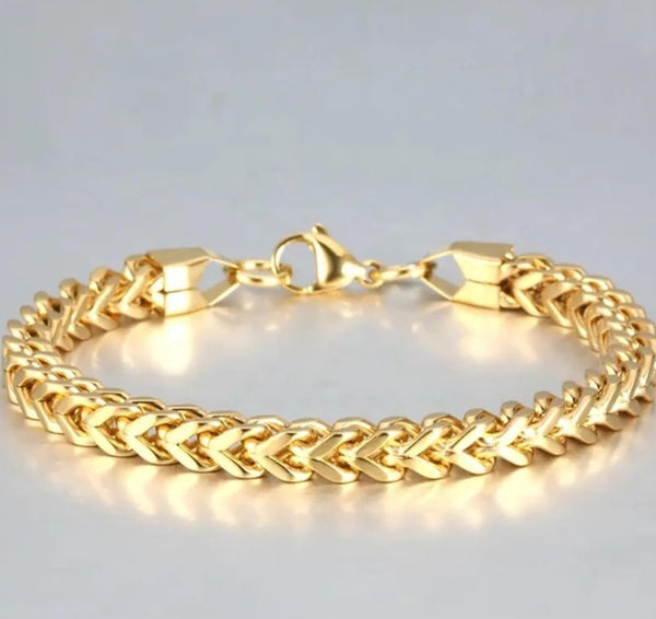 Step up your style game with the Royal Link Gold Bracelet, a perfect fusion of elegance and masculinity. Designed with a bold V-pattern chain style, this bracelet radiates strength and luxury, making it a statement piece for every occasion.