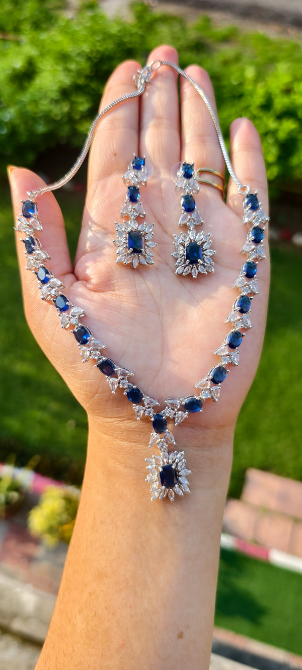 Stunning sapphire-blue stones with high-shine American Diamonds