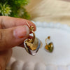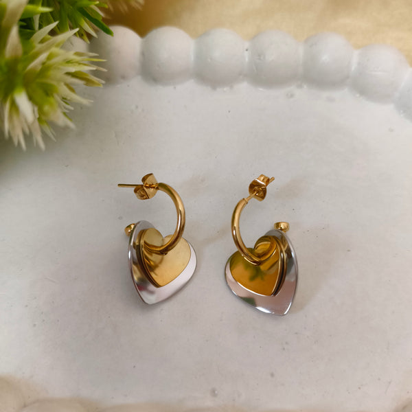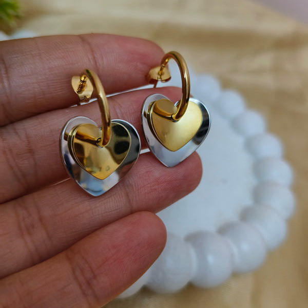 Make a bold yet romantic statement with our Dual-Tone Heart Hoop Earrings, designed to symbolize love with a modern twist. Featuring a unique two-layer heart charm—shimmering silver at the base and polished golden on top—these earrings radiate elegance and versatility. The sleek golden hoops perfectly complement the double-heart design, creating a stylish accessory that balances contemporary chic with timeless charm.