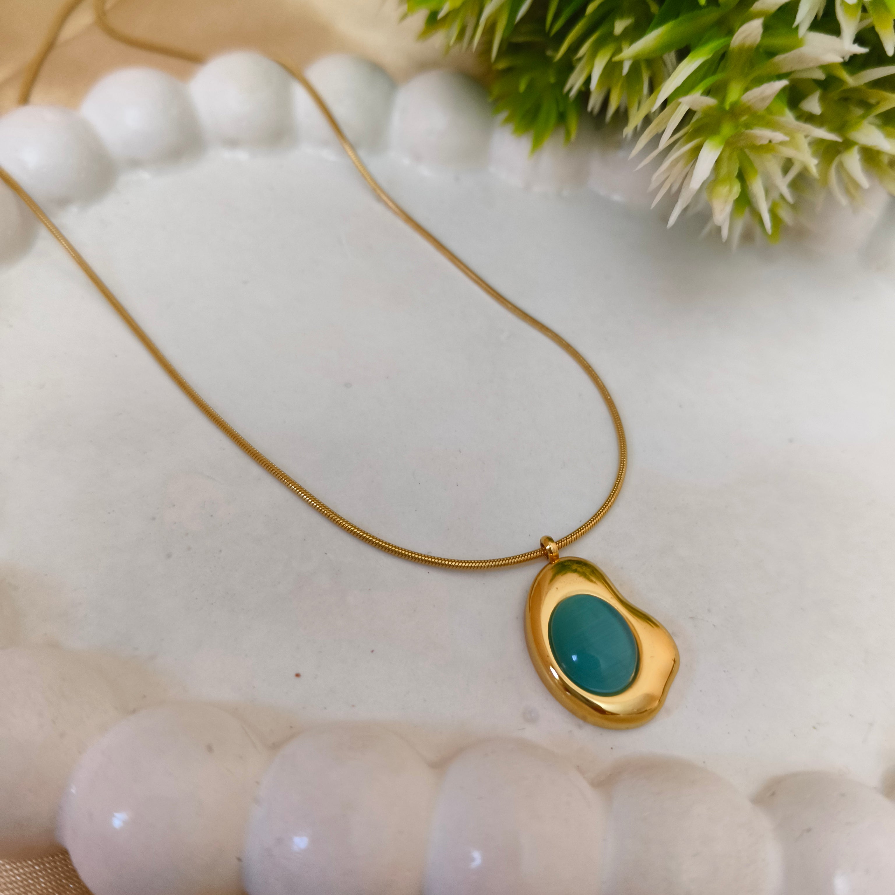 Elevate your everyday style with this gold-tone anti-tarnish pendant chain, featuring a sleek, modern design and a striking oval green gemstone centerpiece. Crafted from premium stainless steel with a durable anti-tarnish coating, this necklace offers long-lasting shine and resistance to fading. Its smooth snake chain design and lightweight pendant make it perfect for daily wear or special occasions.
