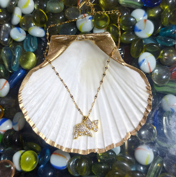 Celebrate strength and charm with the TrunkSpark Elephant Pendant Chain—featuring a shimmering, crystal-studded elephant charm on a gold-plated anti-tarnish chain for modern style and daily wear durability. This playful, luck-bringing piece is a standout accessory that suits both casual and festive occasions.