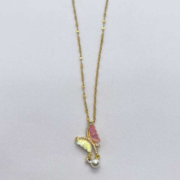 Elevate your look with the LustreWing Butterfly Pendant Chain—a delicate gold-plated piece adorned with pastel butterfly wings and a lustrous pearl accent, crafted with high-quality anti-tarnish materials for everyday shine and durability. This pendant chain blends whimsical charm and minimal elegance, making it perfect for daily wear, gifting, or special occasions in 2025.