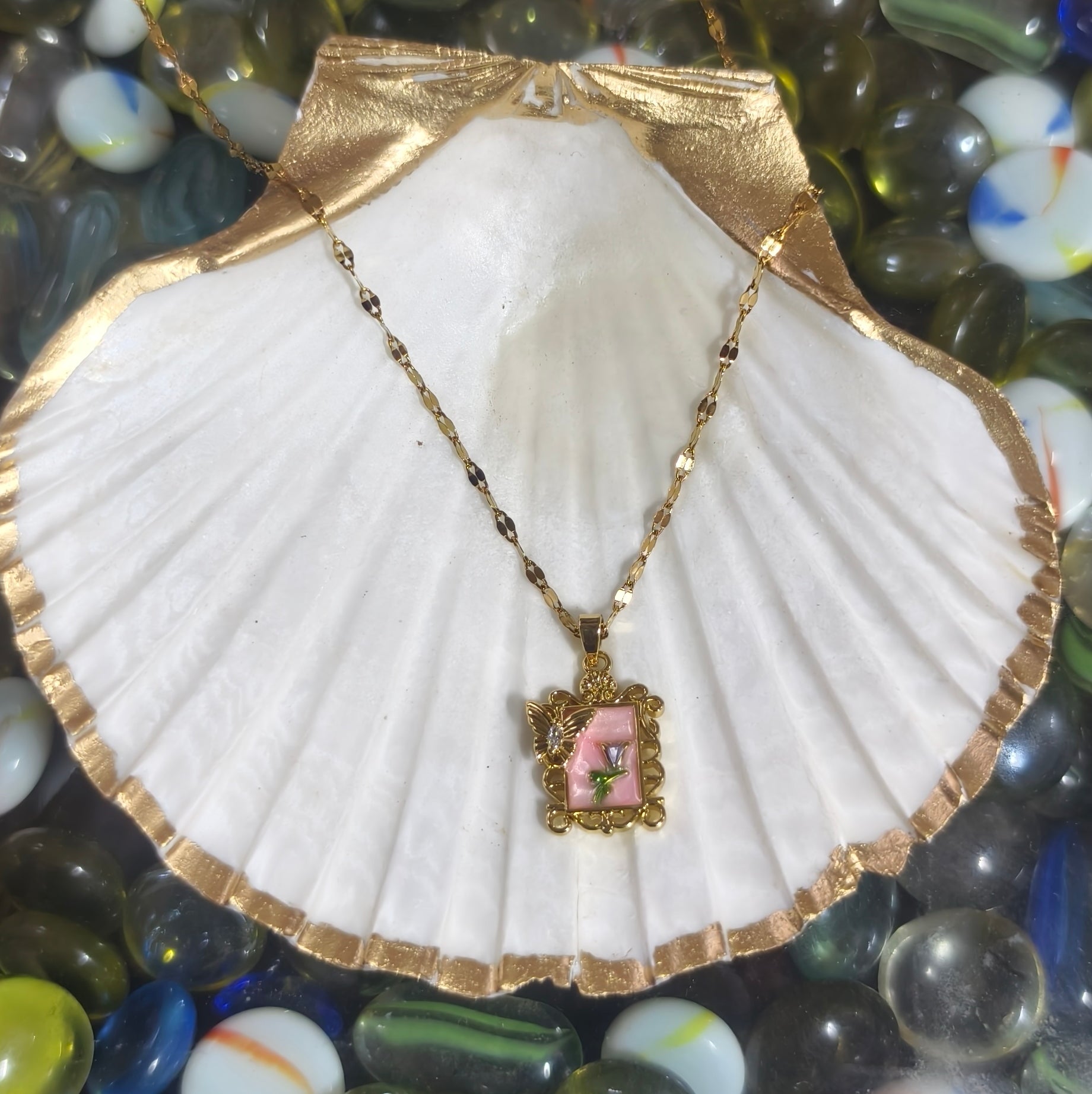 Let your style bloom with this elegant anti-tarnish pendant chain—crafted to turn heads and keep you glowing through every season.