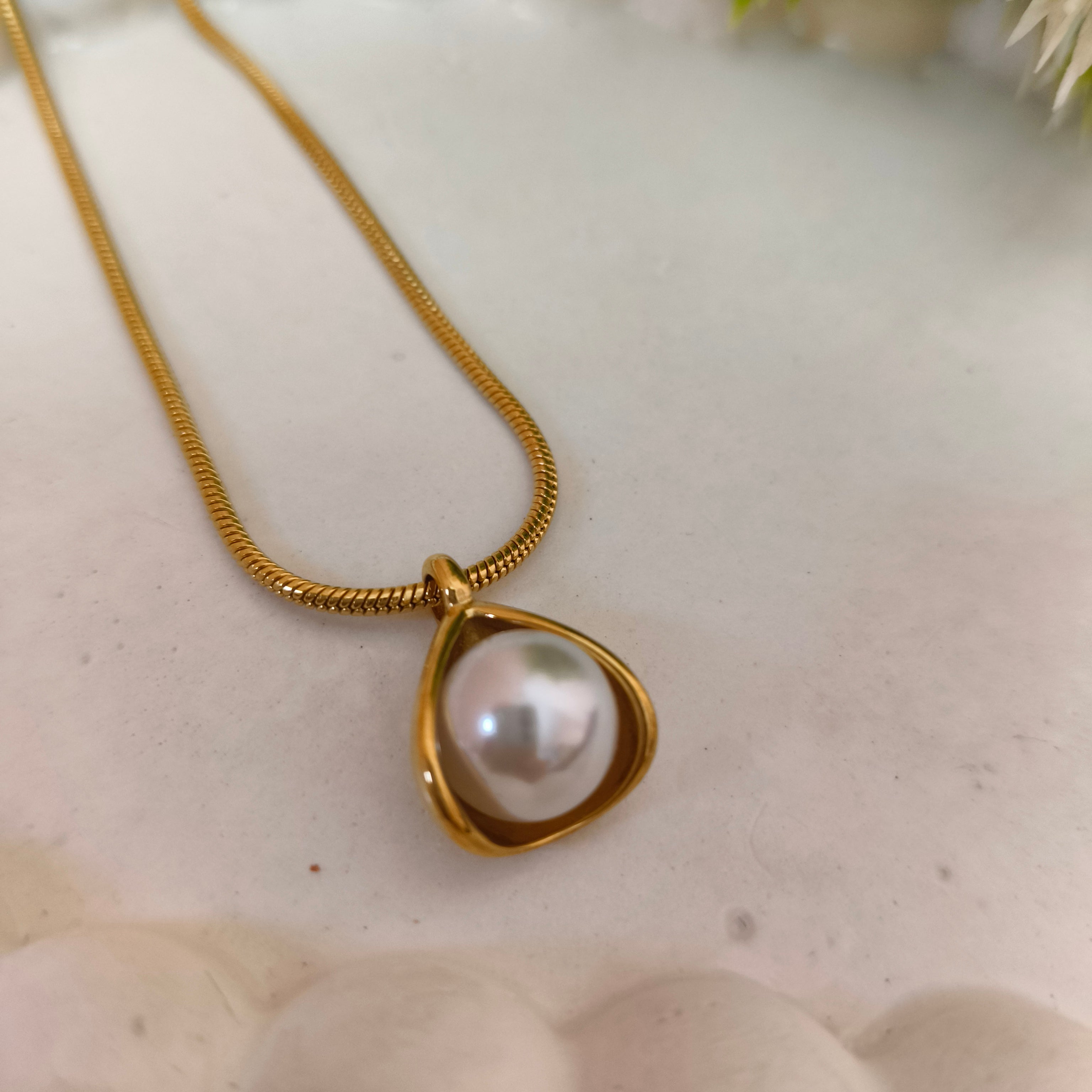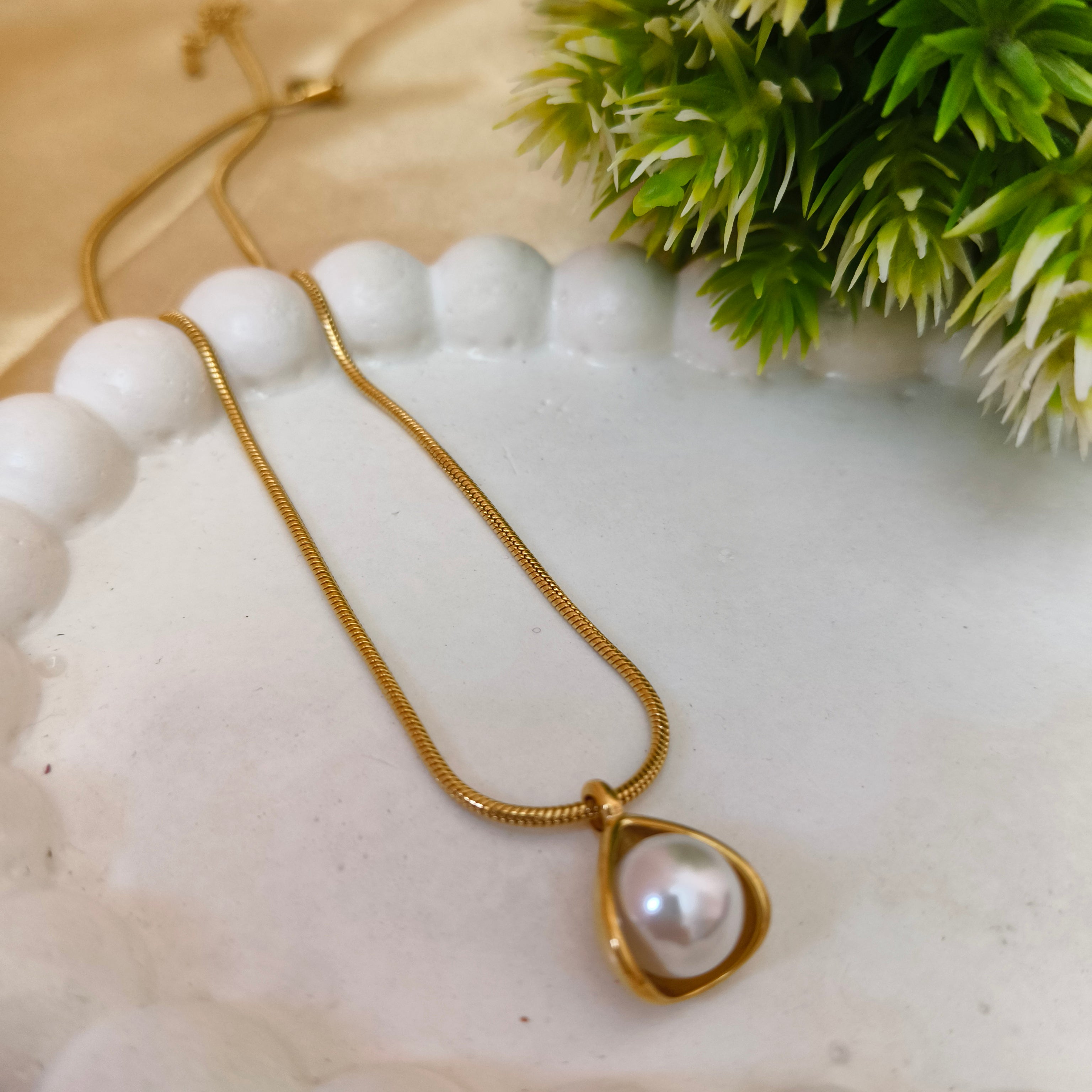 Elevate your everyday style with Golden Pearl Charm pendant chain, featuring a sleek, modern design and a striking oval green gemstone centerpiece. Crafted from premium stainless steel with a durable anti-tarnish coating, this necklace offers long-lasting shine and resistance to fading. Its smooth snake chain design and lightweight pendant make it perfect for daily wear or special occasions.