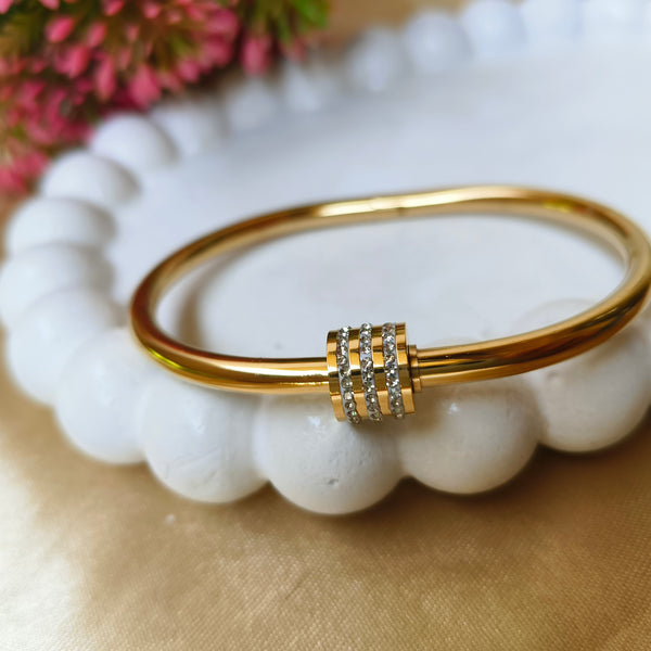 The Radiant Halo Gold Bangle is the perfect blend of simplicity and sophistication. Crafted from high-quality stainless steel and finished with a luxurious anti-tarnish gold plating, this bracelet is designed to shine beautifully for years without losing its brilliance.