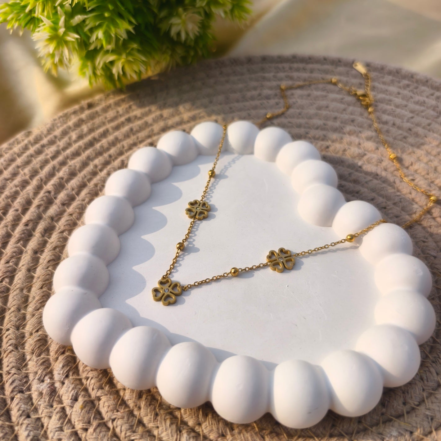 Designed with three delicate four-leaf clover charms, this necklace brings a minimal yet classy vibe to any outfit.