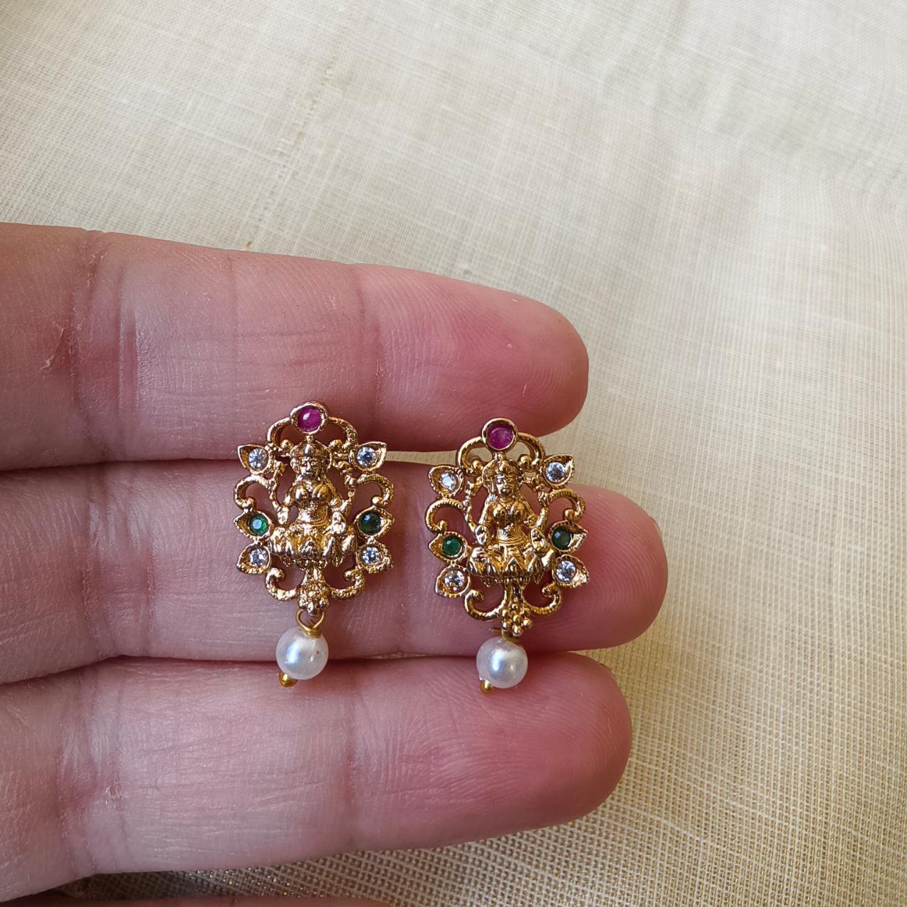 Drape yourself in timeless grace with the Royal Radiance Pearl Choker. Intricately designed with three rows of luminous pearls and finished with an antique gold Lakshmi motif, this set comes with matching earrings adorned with miniature pearls and colored stones. Perfect for ethnic occasions, weddings, and elegant evenings, it’s a must-have for every vintage jewelry lover.