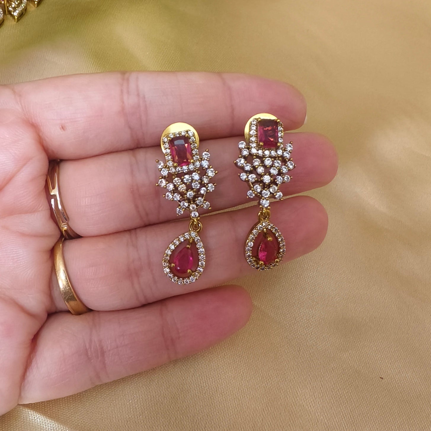 Features a bold pear-drop pendant at the center for a luxurious finish.