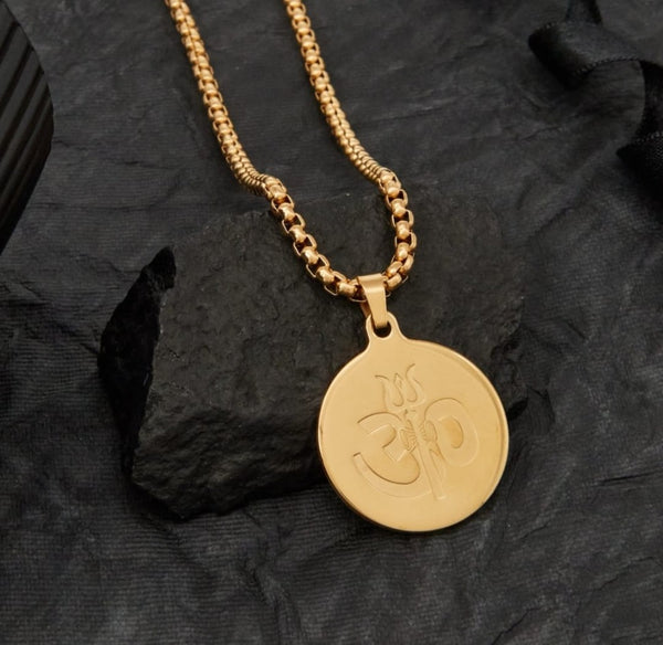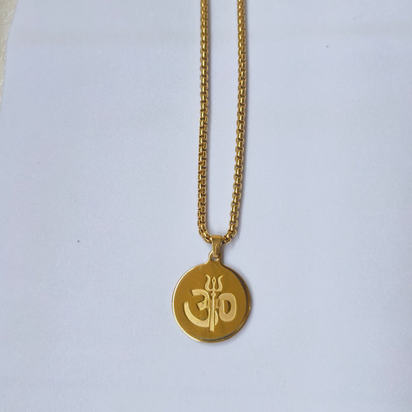Om Trishul Anti-Tarnish Gold-Plated Men’s Pendant Chain